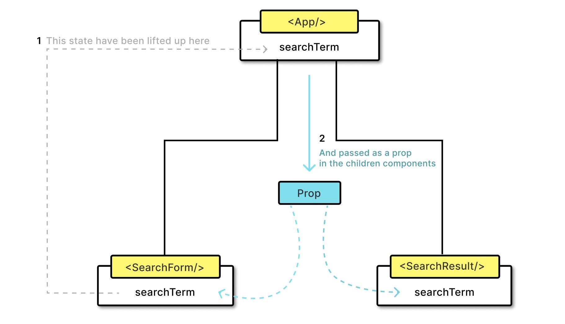 Appcomponent, it triggers a re-render, updating bothSearchFormandSearchResults SearchFormreceives and displays the updatedsearchTermvalueSearchResultsreceives and displays the same updatedsearchTermvalue
