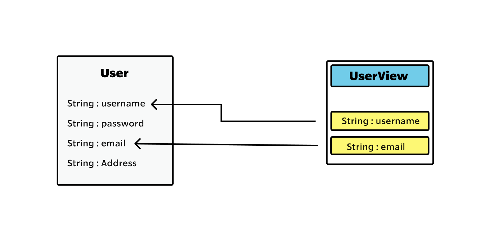 Looking back at the User class, we can see it has many properties, yet not all of them are helpful. For example, if you want to retrieve a user attached to a certain email address, just the username is enough.