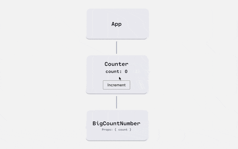 Some developers believe that every state change in React forces an application-wide render, but this isn't true. Re-renders only affect the component that owns the state and its descendants (if any). The App component, in this example, doesn't have to re-render when the count state variable changes.